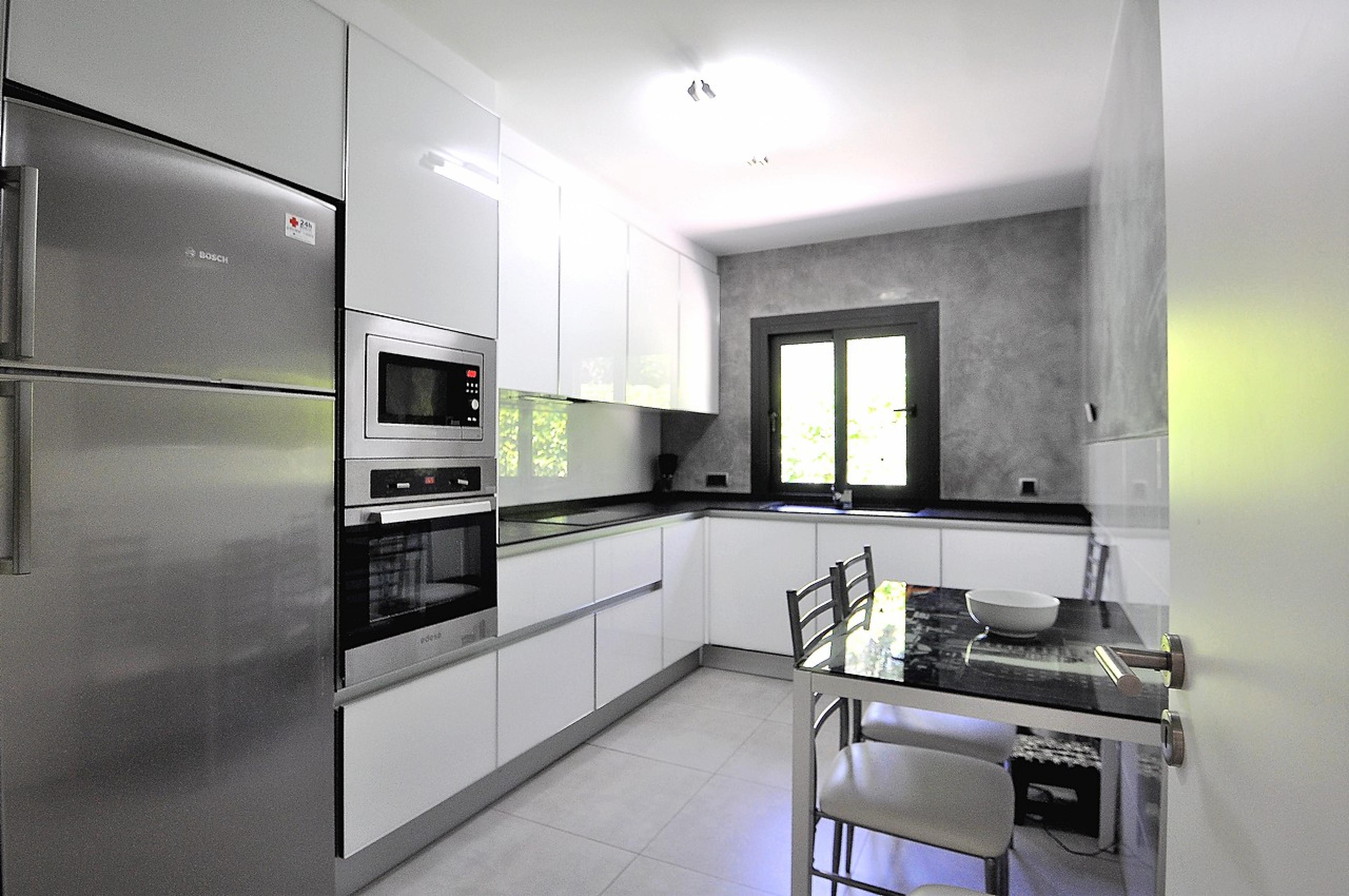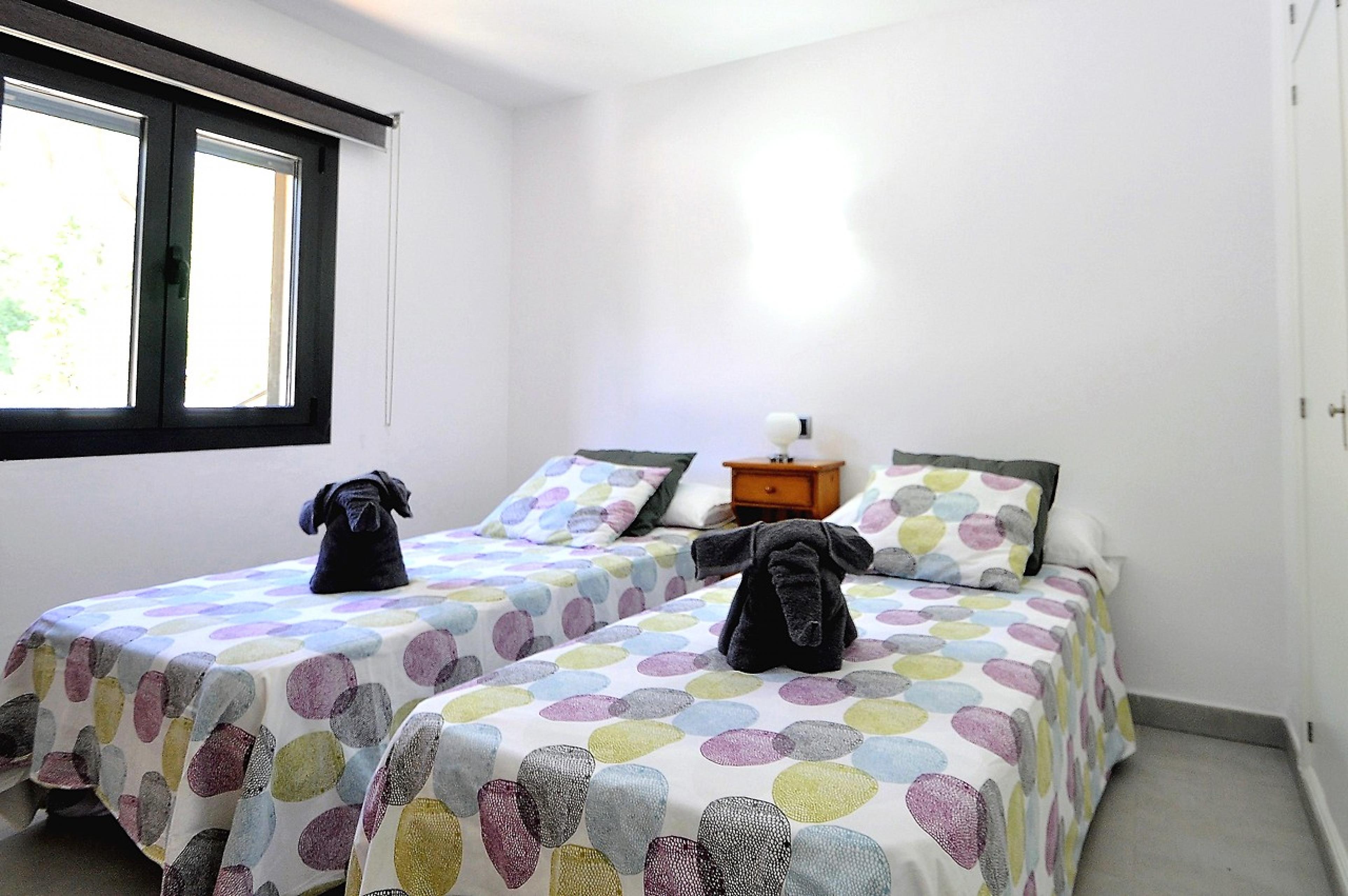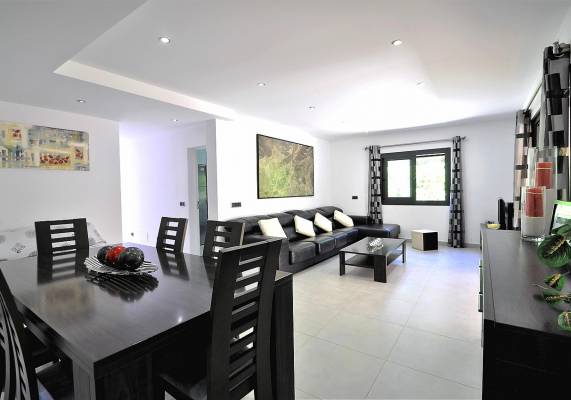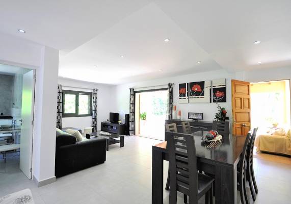 Es verfügt über 120 m2 im Bungalowstil . Es gibt ein Wohnzimmer mit SAT TV, Internet , Ledersofa und Esstisch für 8 Personen. Eingerichtete Küche, 3 Doppelschlafzimmer und 2 Badezimmer.